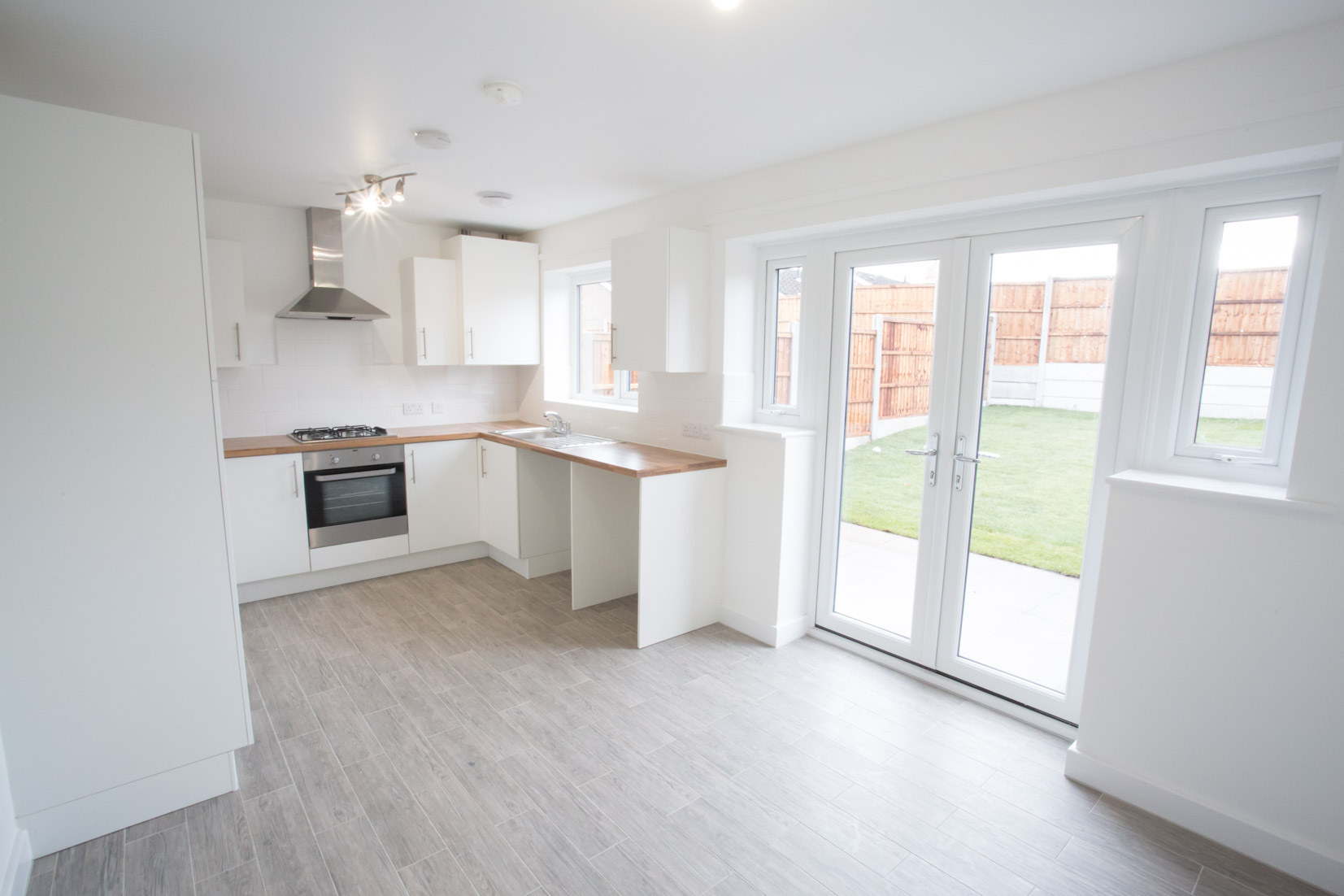 The through-hallway leads to a large living room, a downstairs toilet and a modern and neutral kitchen that comes equipped with a Zanussi oven and an Indesit extractor fan.
